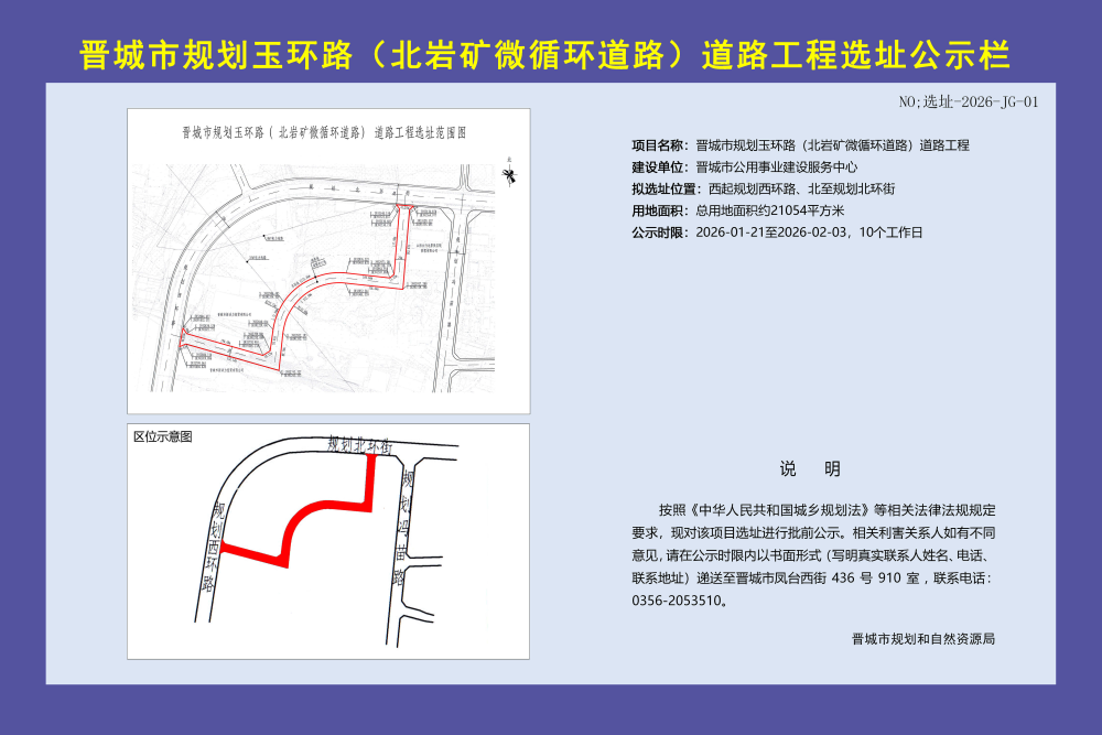 晋城市规划玉环路(北岩矿微循环道路)道路工程选址公示