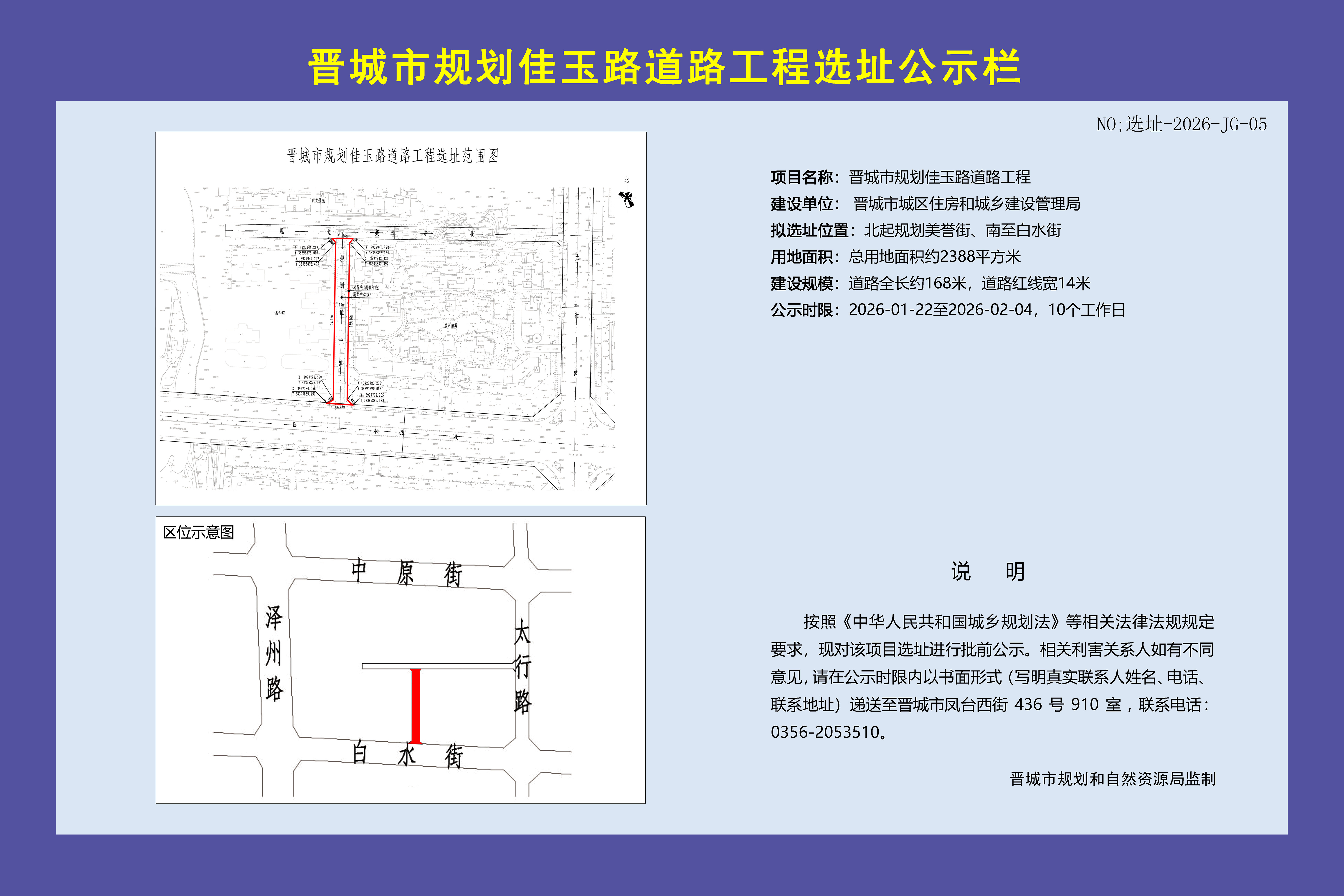 晋城市规划佳玉路道路工程选址公示栏
