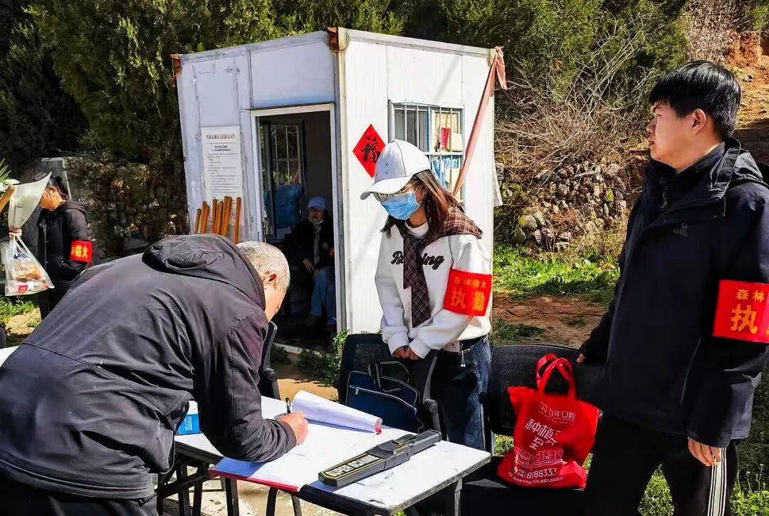 在主要进山路口、山林腹地、墓地集中区等关键点位,一个个“党员先锋岗”醒目矗立,成为青山绿水间最亮眼的“红色坐标”。身着红马甲的党员干部轮班值守、严阵以待,主动亮身份、作表率、当先锋。他们对每一辆进山车辆、每一位祭扫群众逐一排查,细致做好信息登记、火种收缴、政策宣讲,以“严防死守、不漏一人一车”的硬核举措,坚决杜绝火种上山、火源入林。